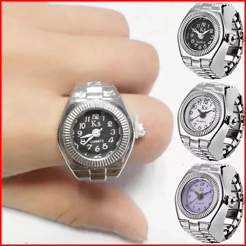 Jam Tangan Cincin Kuarsa Penunjuk Keren Jam Tangan Mini Jam Tangan Jari Pita Baja