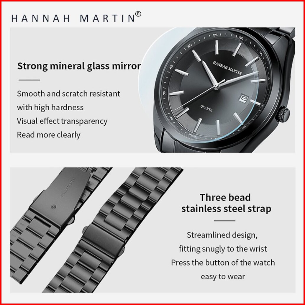 Hannah Martin Jam Tangan Pria 100 Original Business Kekinian Model Terbaru Keren Tanggal Analog Stainless Steel Laki Arl