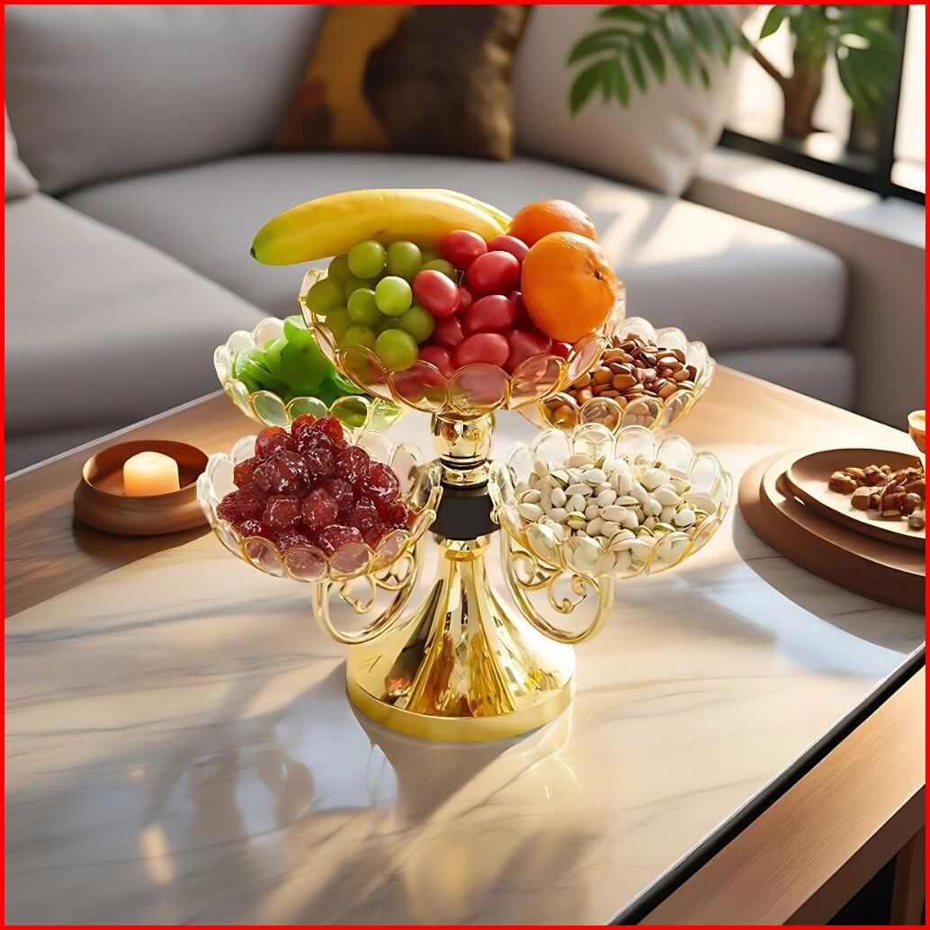 Wadah Buah 2 Tingkat 5in1 Estetik Piring Cemilan Bisa Putar 360 Derajat Tempat Permen Dekorasi Kristal Hiasan Aesthetic