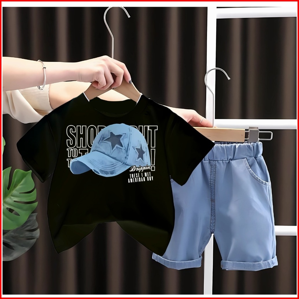 Setelan Anak Usia 1-5 Tahun Kaos Motif Topi Celana Jeans