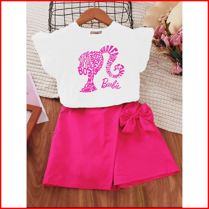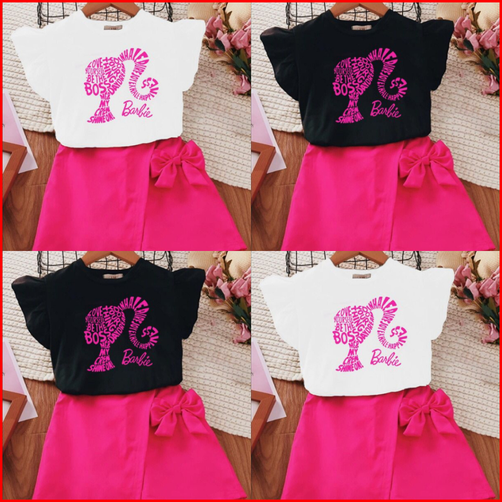Setelan Anak 1-5 Tahun Motif Barbie Model Rok Pita Terbaru Kekinian