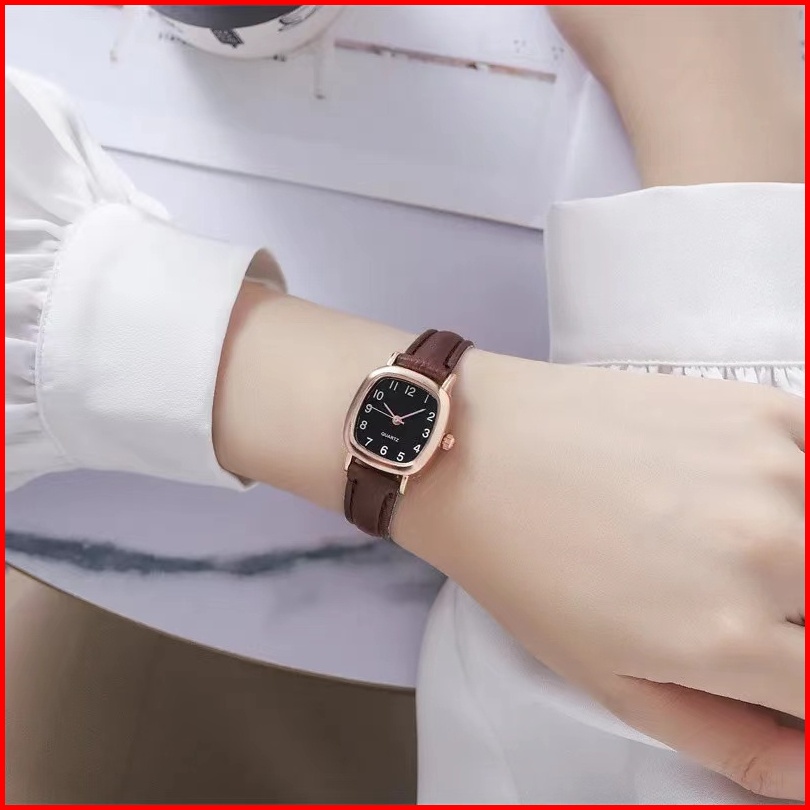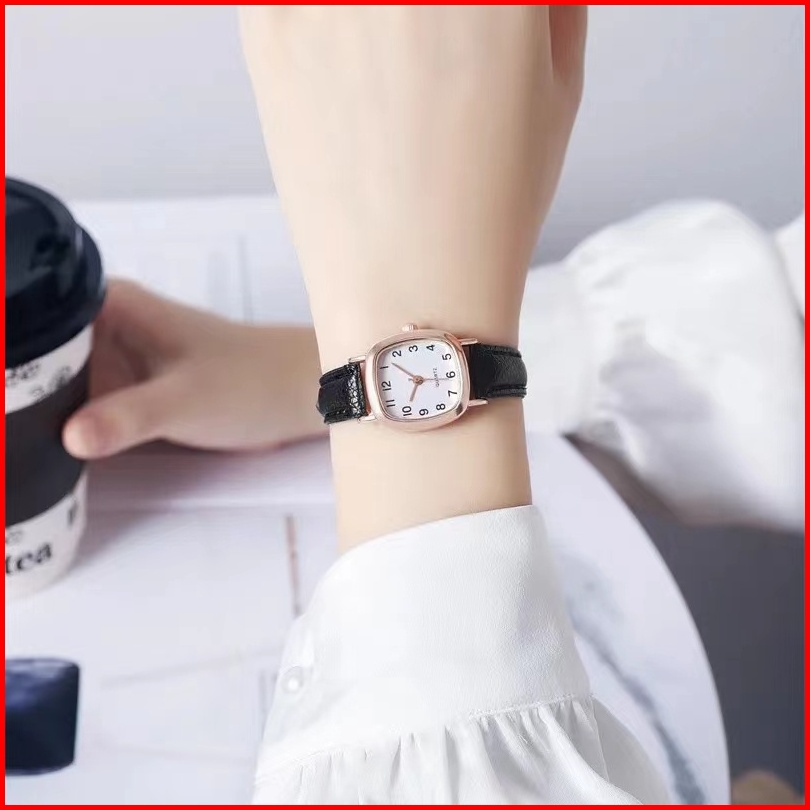 Jam Tangan Pelat Persegi Kecil Wanita Fashion Korea Jam Tangan Bisnis Gaya Korea Retro