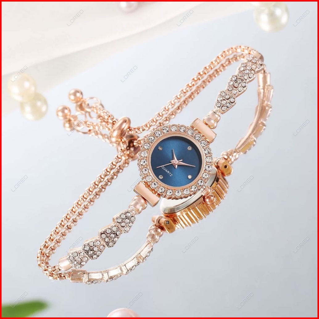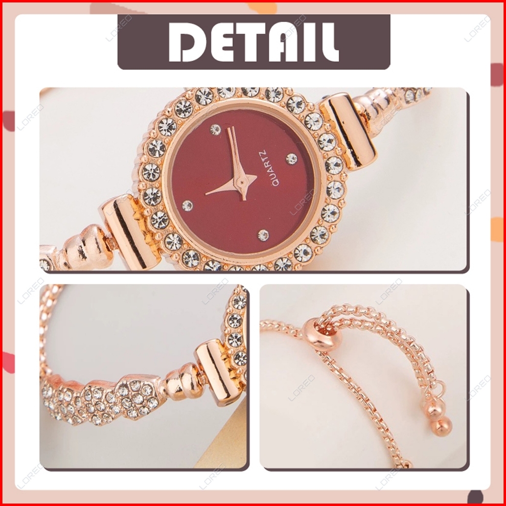 Loreo - Jam Tangan Wanita Model Serut Fashion Jam Tangan Analog Aksen Diamond Crystal
