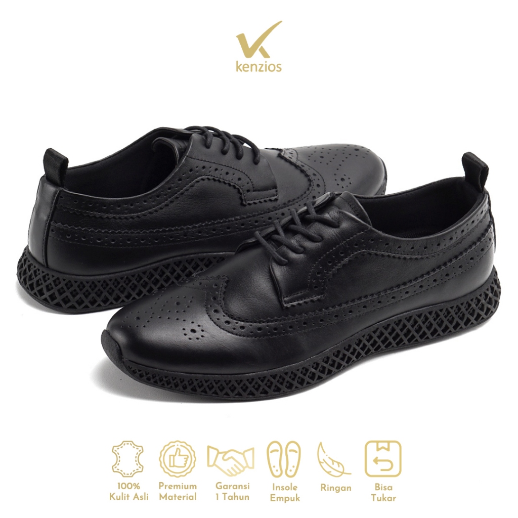 Kenzios Sepatu Formal Pria Kulit Asli British Bold