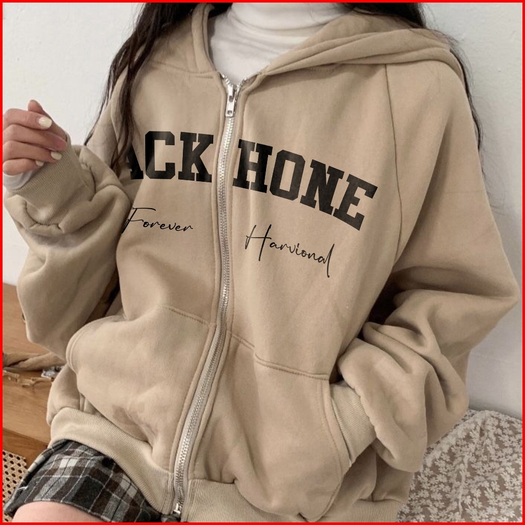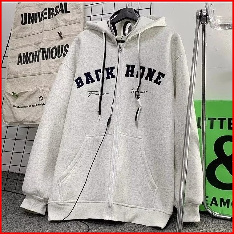 Harvional Jaket Zipper Sweater Back Hone Bahan Fleece Size S - Xxl Pria Wanita