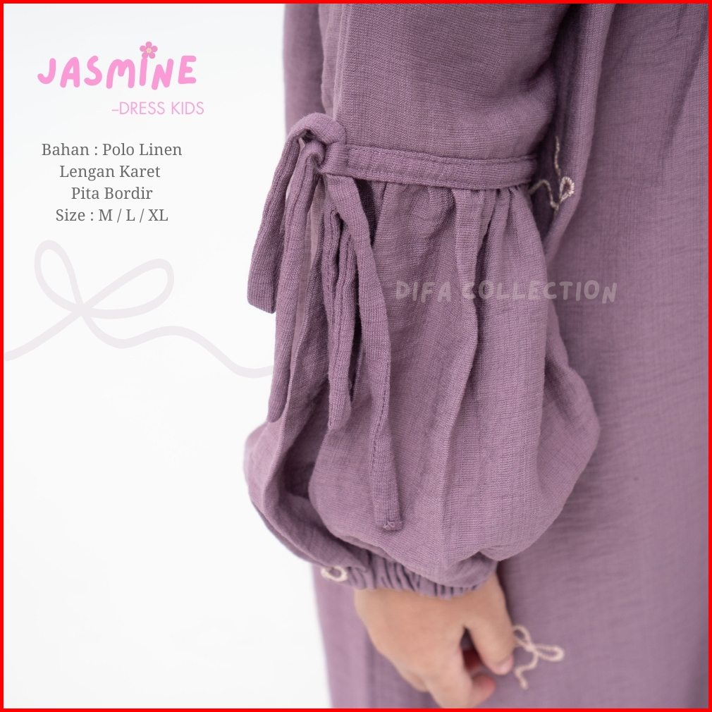 Jasmine Dress Kids Gamis Anak Perempuan Muslim Pita Coquette Bordir Usia 4-10th Gamis Ruffle Daily Pengajian Sekolah Byd