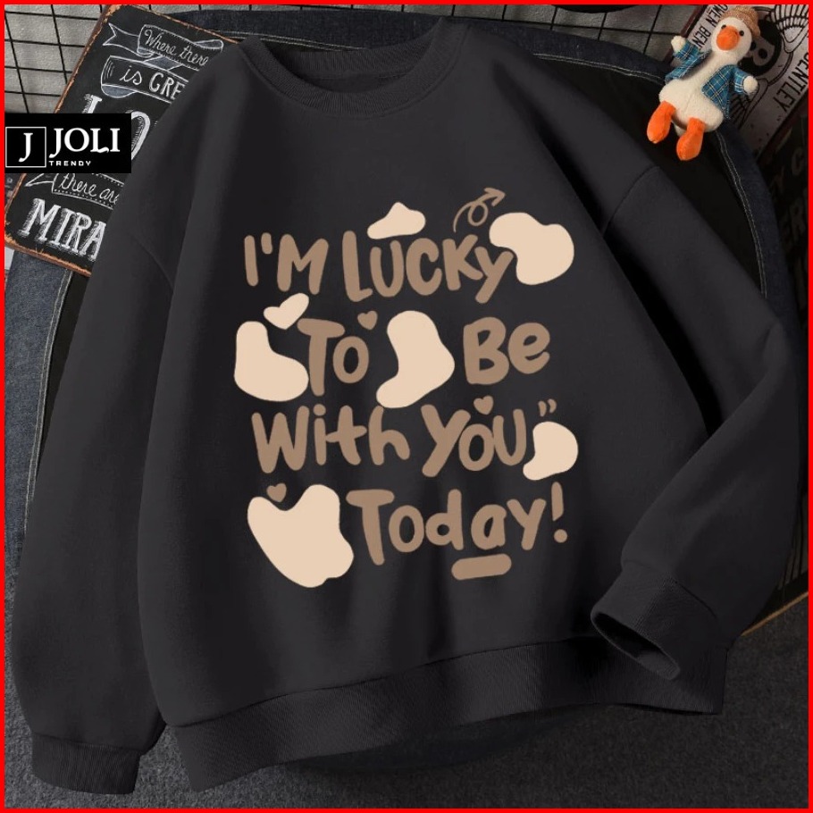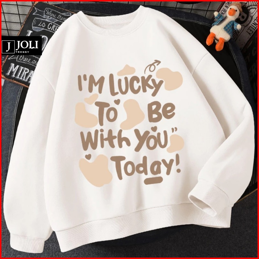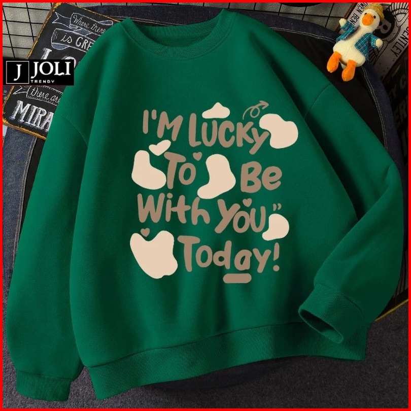 Harvional Sweater Crewneck Jolly I M Lucky Bahan Fleece Size S - Xxl Pria Wanita