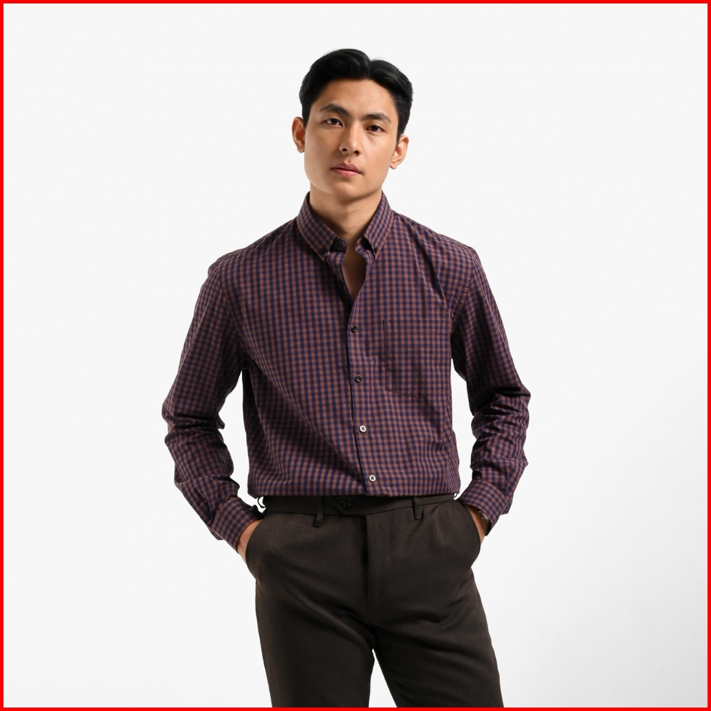 Heymale Vichy Shirt Long Sleeve Baju Kemeja Pria Lengan Panjang