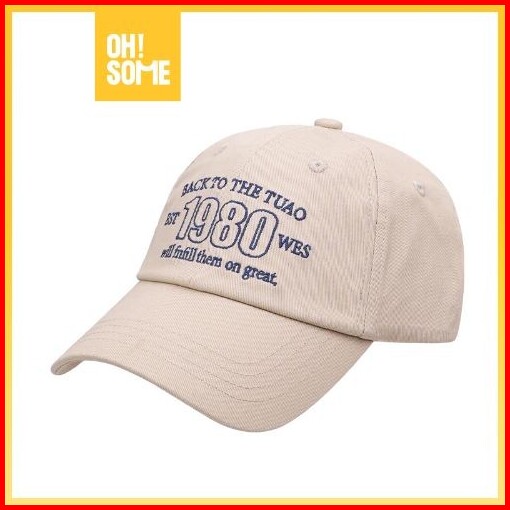 Ohsome Topi Baseball Teks Amerika Retro Putih Khaki Mostorhata