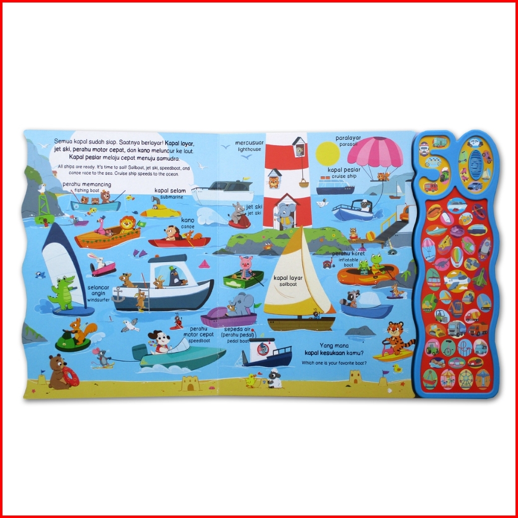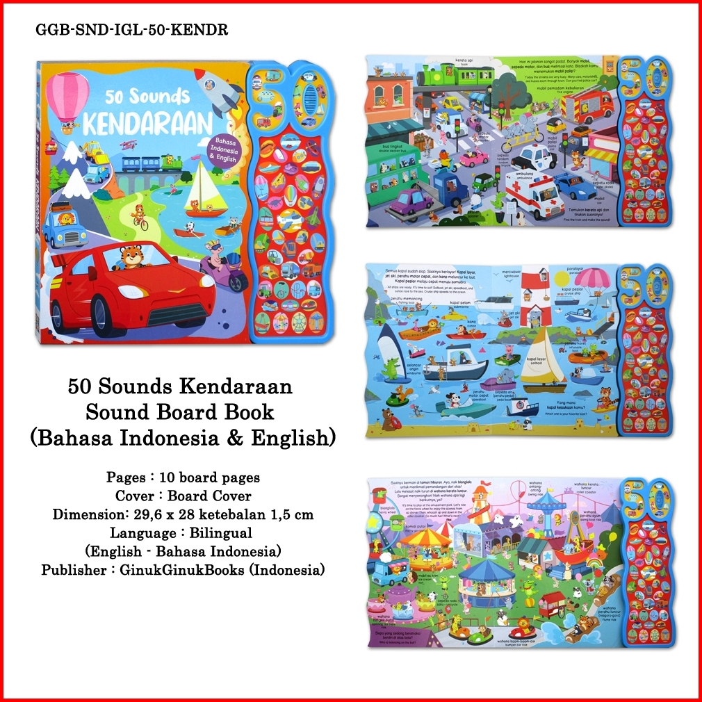 50 Sounds Kendaraan Peternakan Sound Board Book Bahasa Indonesia English Ginukginuk - Sound Book - Buku Bersuara Hewan