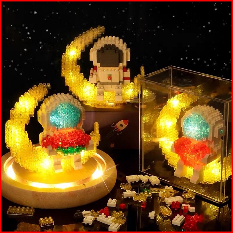 Bisa Bersinar Led Glowing Astronot Spaceman Mainan Balok Susun Disney Bulan Model 12 Rasi Bintang Nano Block Diy