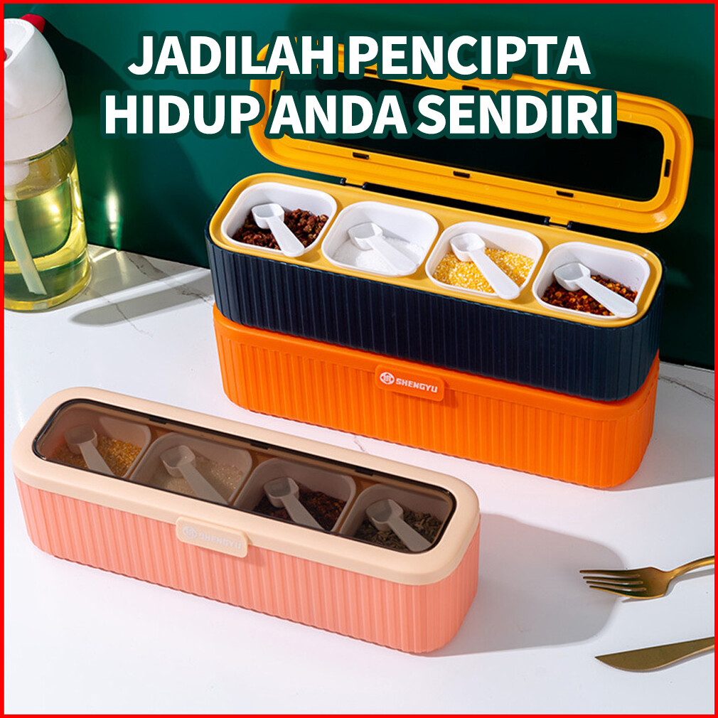 Box Dapur Cup Spice Storage Seasoning Aesthetic 4in1 Bumbu Penyimpanan Tempat Toples Tempat