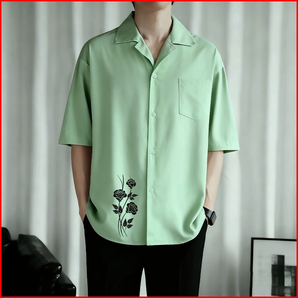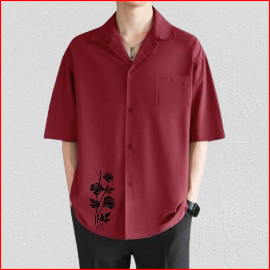 Kemeja Pria Vintage Motif Casual Lengan Pendek Terbaru
