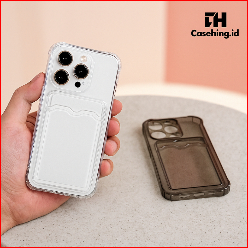 Casehing - Case Silicone Pocket Card Anticrack Transparan Iphone 7 8 Se Plus X Xs Max Xr 11 12 13 14 15 16 Pro Plus Prom