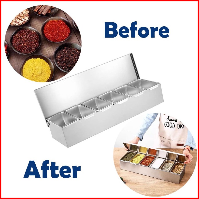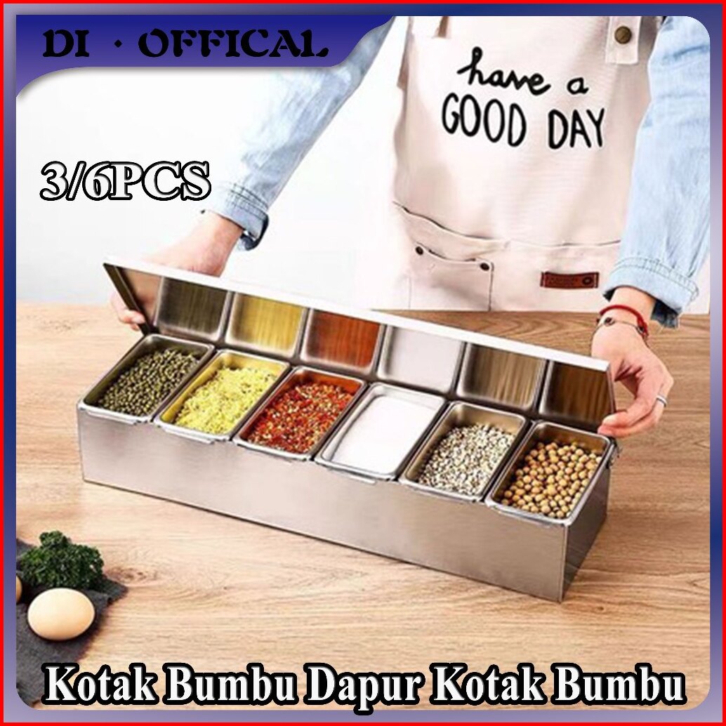 Kotak Bumbu Dapur Kotak Bumbu 6 Pcs Seasoning Box Kotak Bumbu Stainless Tempat Bumbu Rempah Spices Condiment Container K