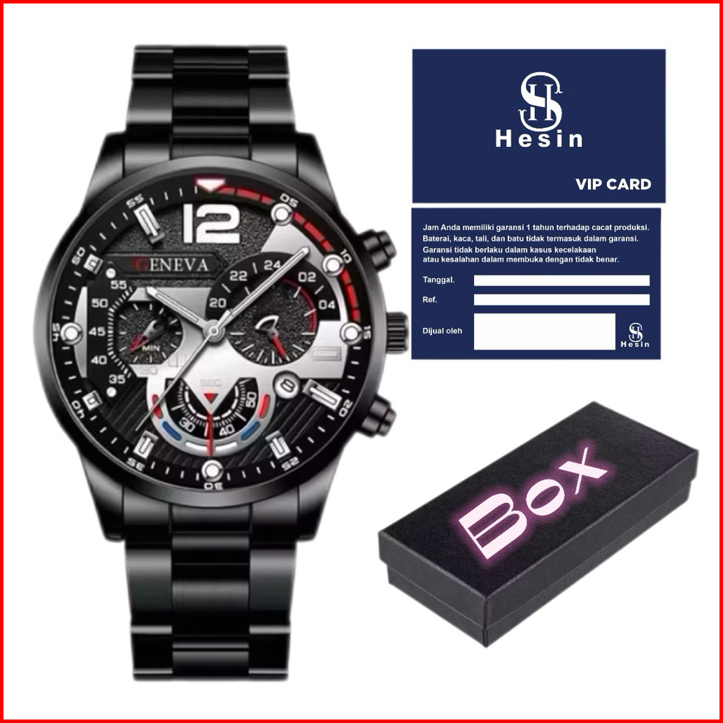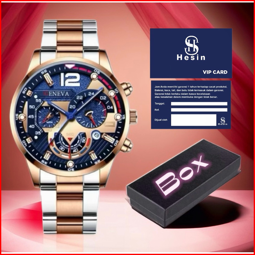 H S Jam Tangan Pria Gnv Crono Varisi Tanggal Aktif Free Box Strap Rantai Stell Dikirim Jakarta