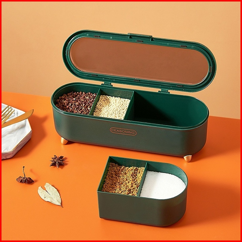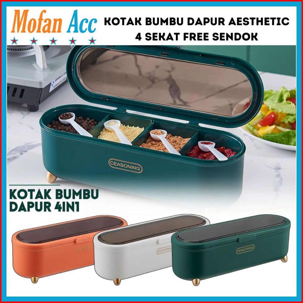 Kotak Bumbu Dapur 4in1 Free Sendok Seasoning Storage Box Toples Garam Lada Merica Gula Serbaguna