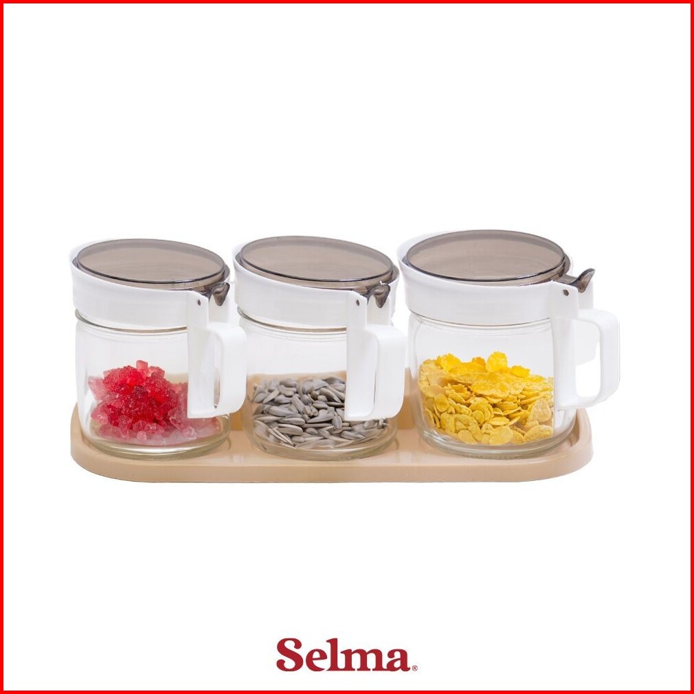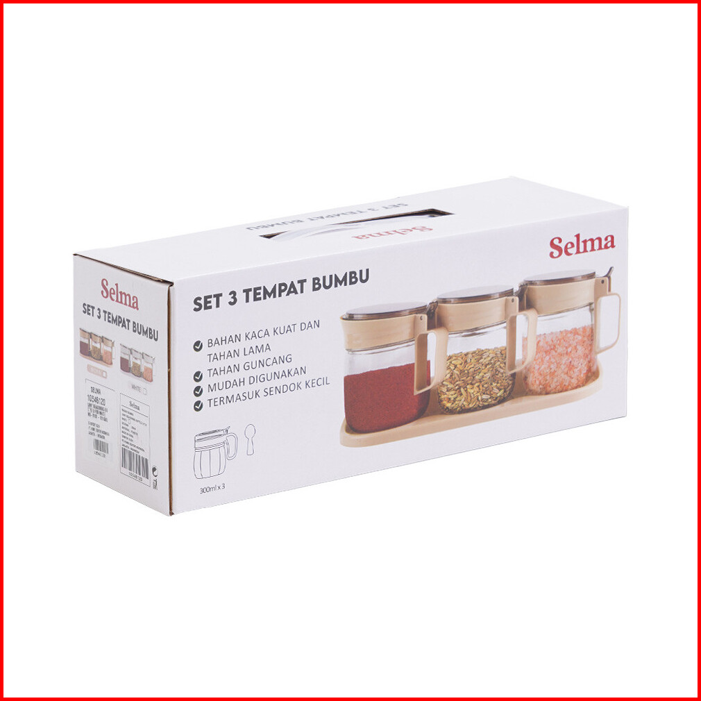 Selma Selma Set 3 Pcs Lany Tempat Bumbu Dapur - Putih Seasoning Box Kotak Bumbu Dapur Dengan Kompartemen Wadah Garam Lad
