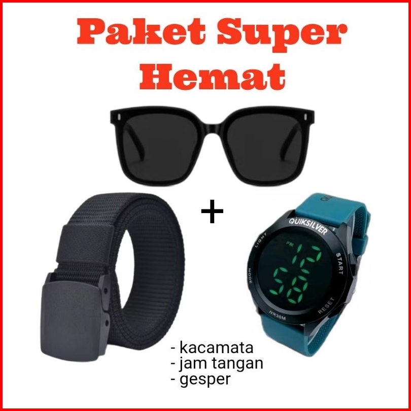 Buy 1 Get 3... Jam Tangan Quicksilver Digital Pria Strap Karet Free Ikat Pinggang Gespet Kacamata Keren Paket Super Hema