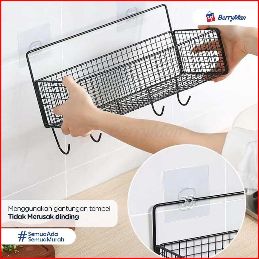 Gentle Rak Besi Kamar Mandi Persegi Rak Sabun Shampo Keranjang Bumbu Dapur Dengan Hook Gentle