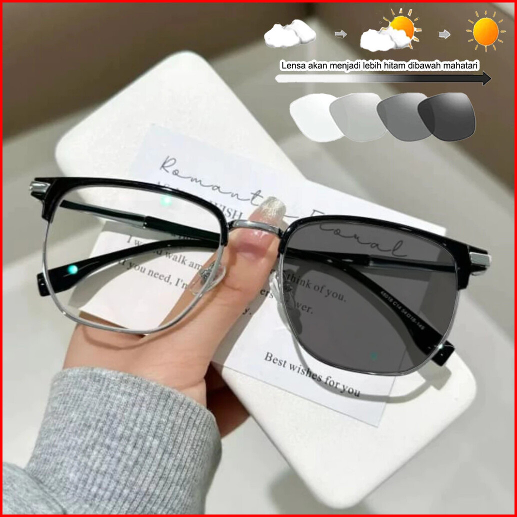 Kacamata Minus Fotokromik -1 Sampai -6 Zhijing-630 Fashion Korea Retro Anti Blue Light Anti Radiasi Model Korea Retro Ka