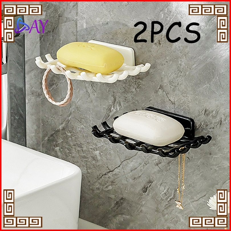 2pcs Set Wadah Sabun Mandi Tempat Wadah Sabun Gantung Dinding Kamar Tempat Sabun Unik Hitam Putih