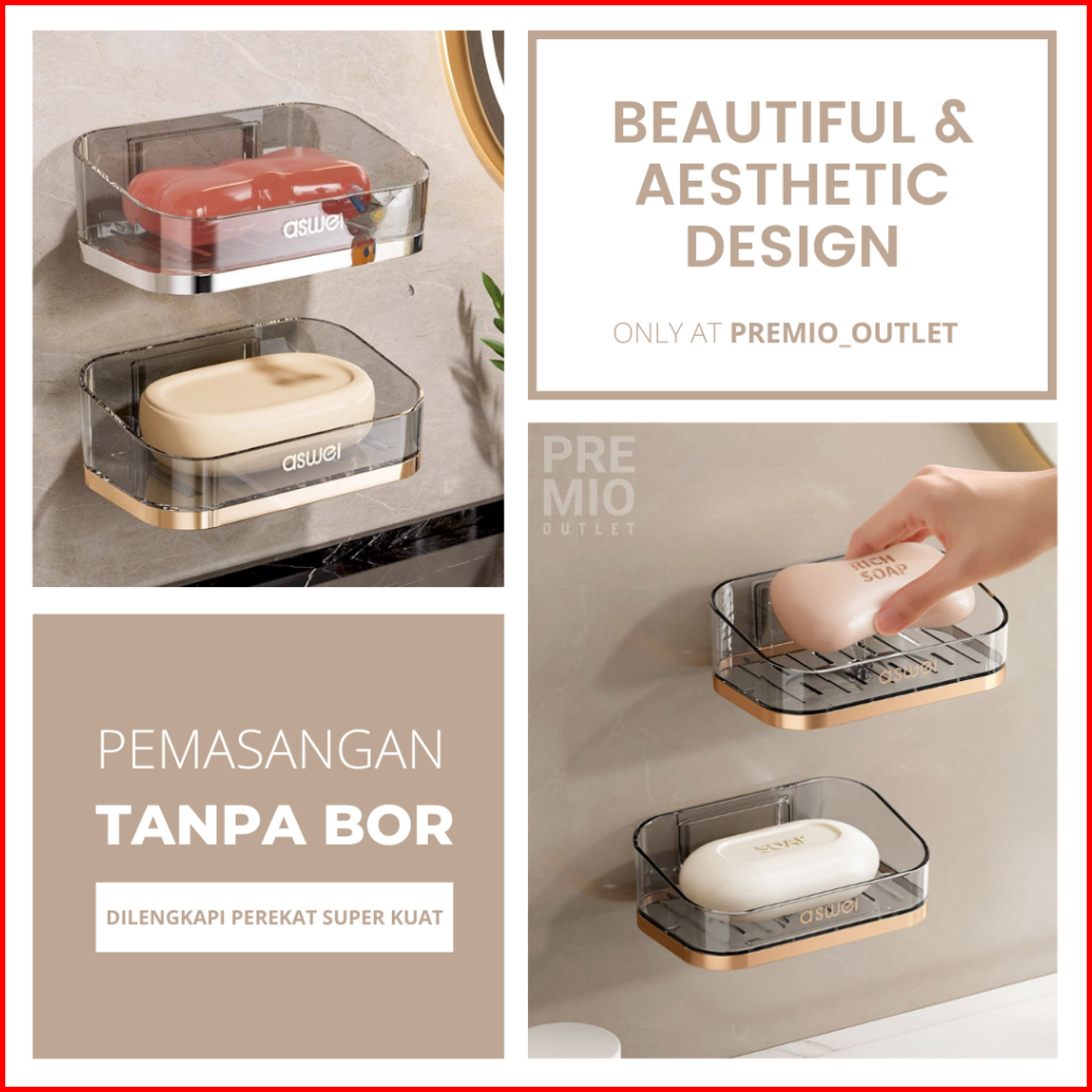 Premio Rak Kotak Tempat Sabun Batang Spons Tempel Dinding Kamar Mandi
