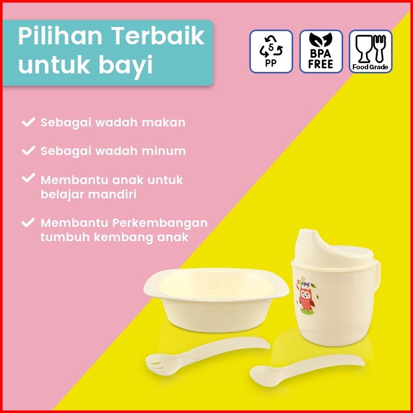 Zippy Feeding Set Kecil Alat Makan Bayi 4 Pcs Bahan Polypropylene Meal Set Tempat Makan Bayi Bpa Free Zip-fs108