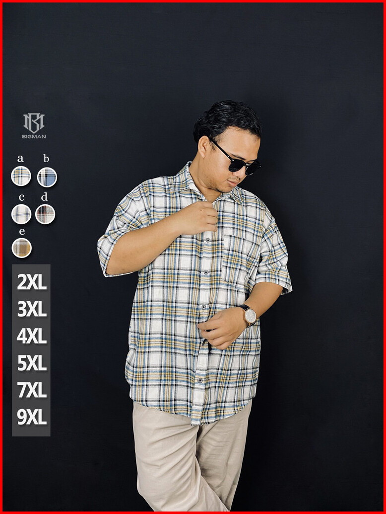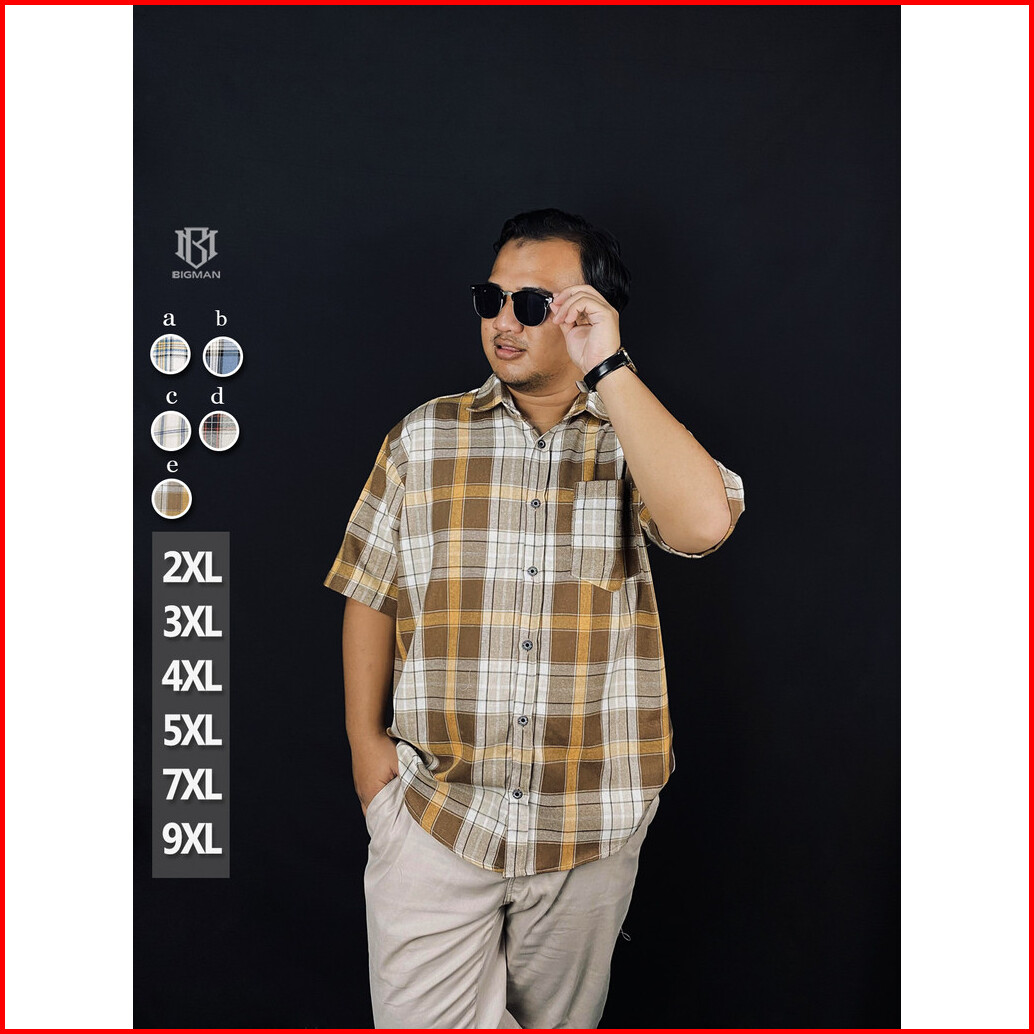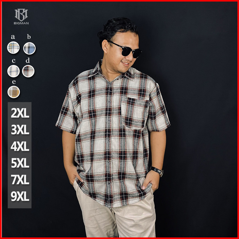 Terbaru Kemeja Flanel Jumbo Pria Lengan Pendek Size 2xl 3xl 4xl 5xl 7xl 9xl