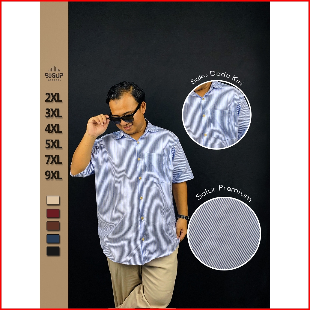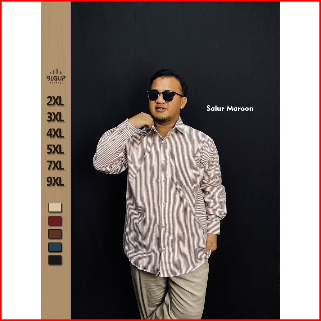 Kemeja Salur Lengan Pendek Pria Warna Maroon Big Size Xxl Xxxl 4xl 5xl 7xl 9xl