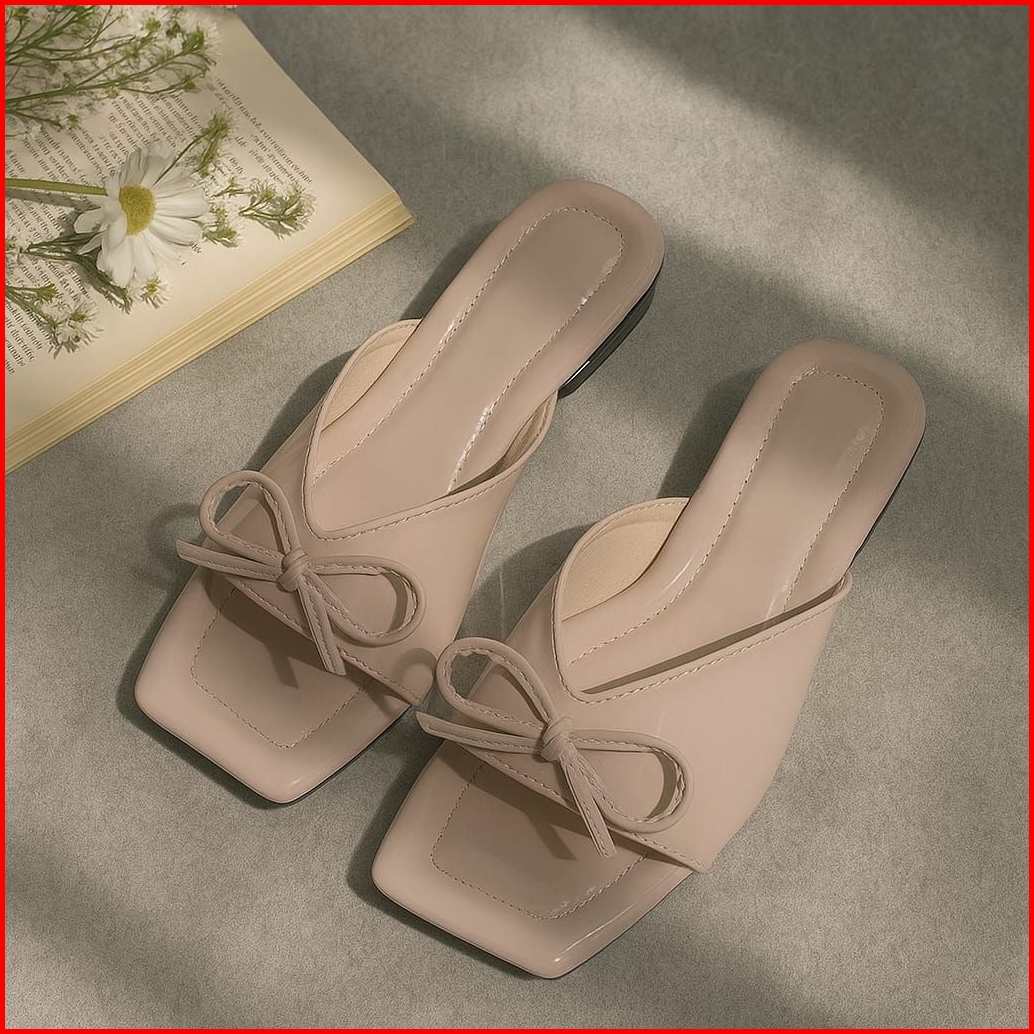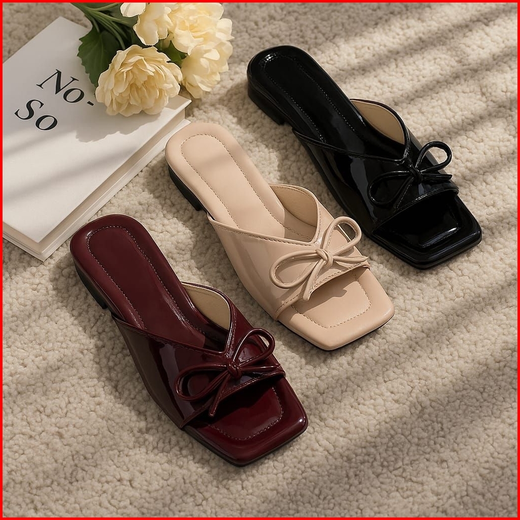 Ghotte - Vera Sendal Teplek Wanita Coquette Slop Tali Pita Casual Terbaru Kekinian Empuk Anti Slip