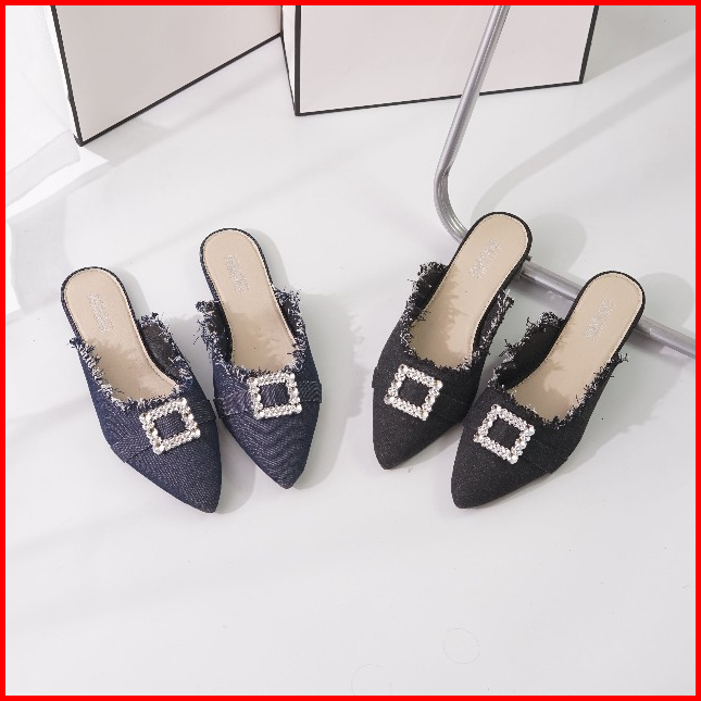 Sepatu Sandal Wanita Jeans Flatshoes Sendal Teplek Wanita Elegan Sandal Santai Pesta Kasual