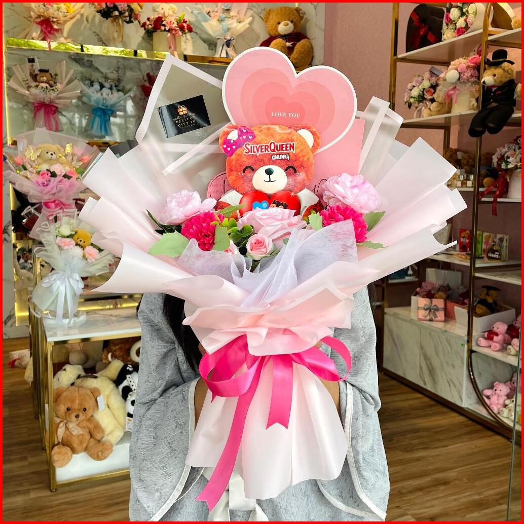 Buket Bunga Beruang Silverqueen Valentine Kado Romantis Kado Ulang Tahun Kado Anniversary