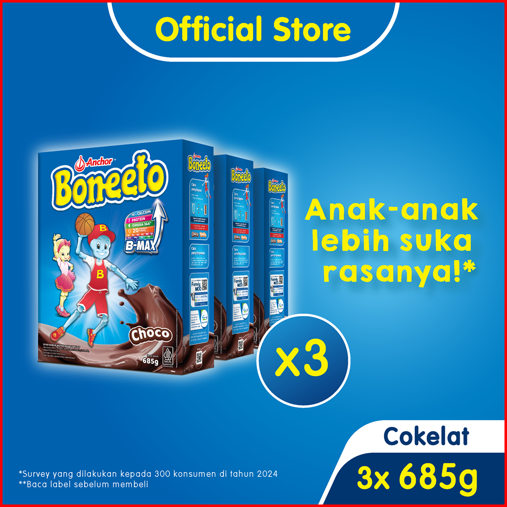 Boneeto Susu Bubuk Anak Sekolah Yummy Choco 3 X 685g - Nutrisi Pertumbuhan Anak Untuk Daya Pikir Dan Tubuh Aktif