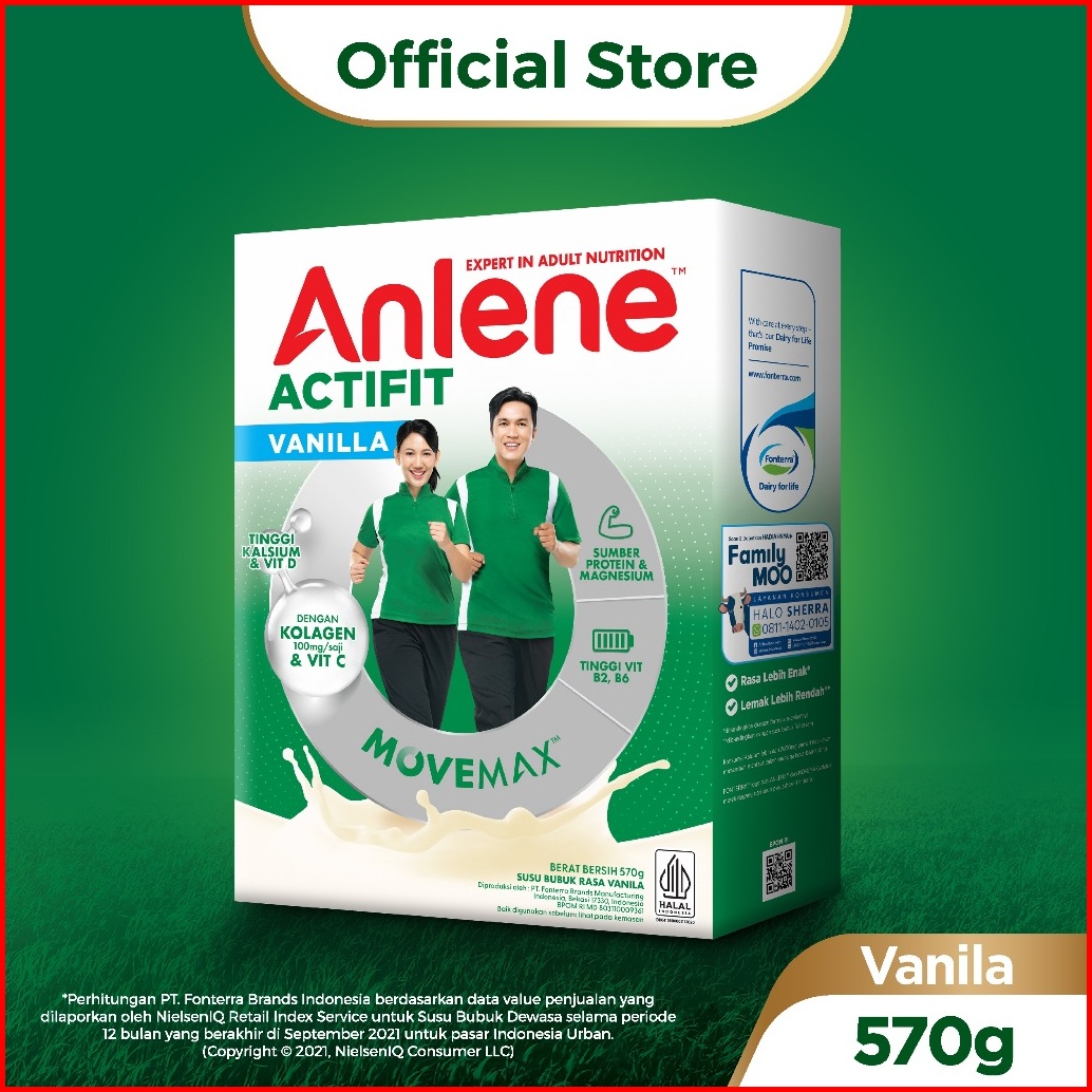Anlene Actifit 3x Susu Bubuk Dewasa Vanila 570g - Nutrisi Tinggi Kalsium Untuk Tulang Sendi Dan Otot