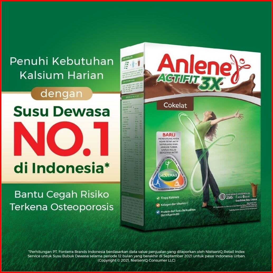 Anlene Actifit 3x Susu Bubuk Dewasa Cokelat 3 X 230g - Nutrisi Tinggi Kalsium Untuk Tulang Sendi Dan Otot