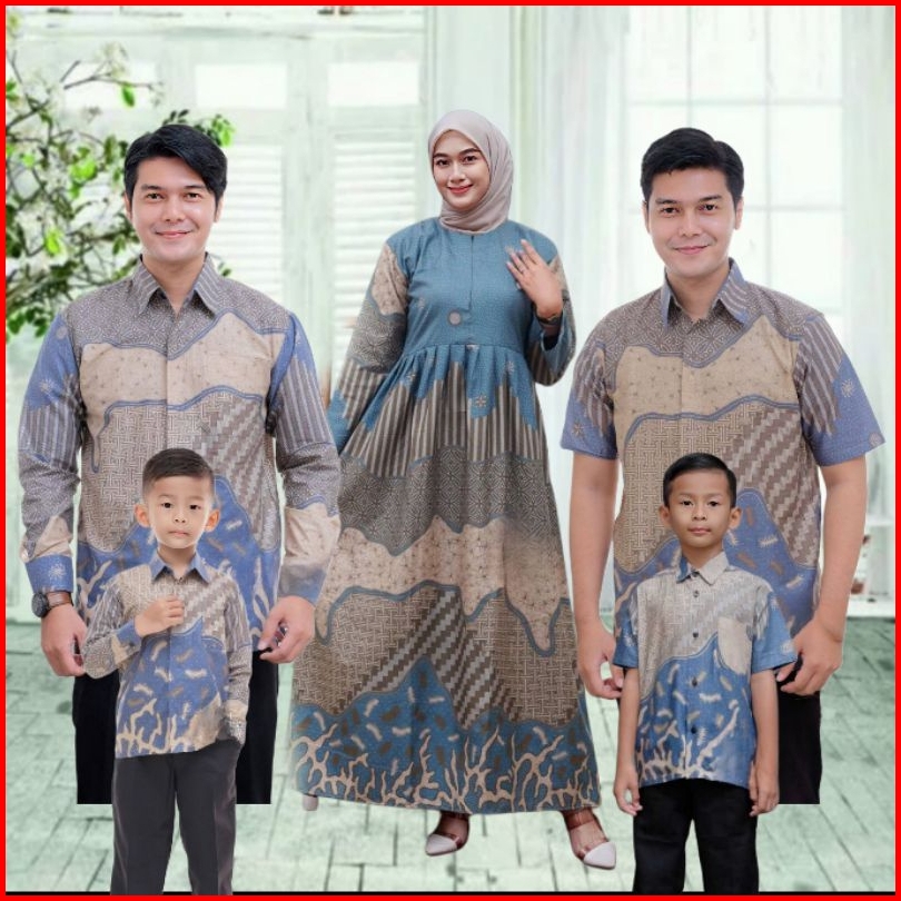 Gamis Batik Couple Keluarga Ayah Ibu Anak Seragam Batik Lebaran Modern Baju Pasangan Suami Istri