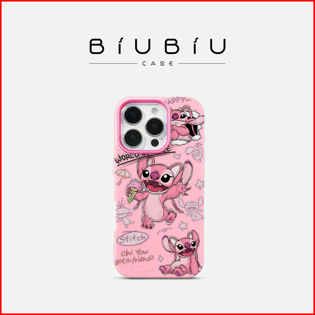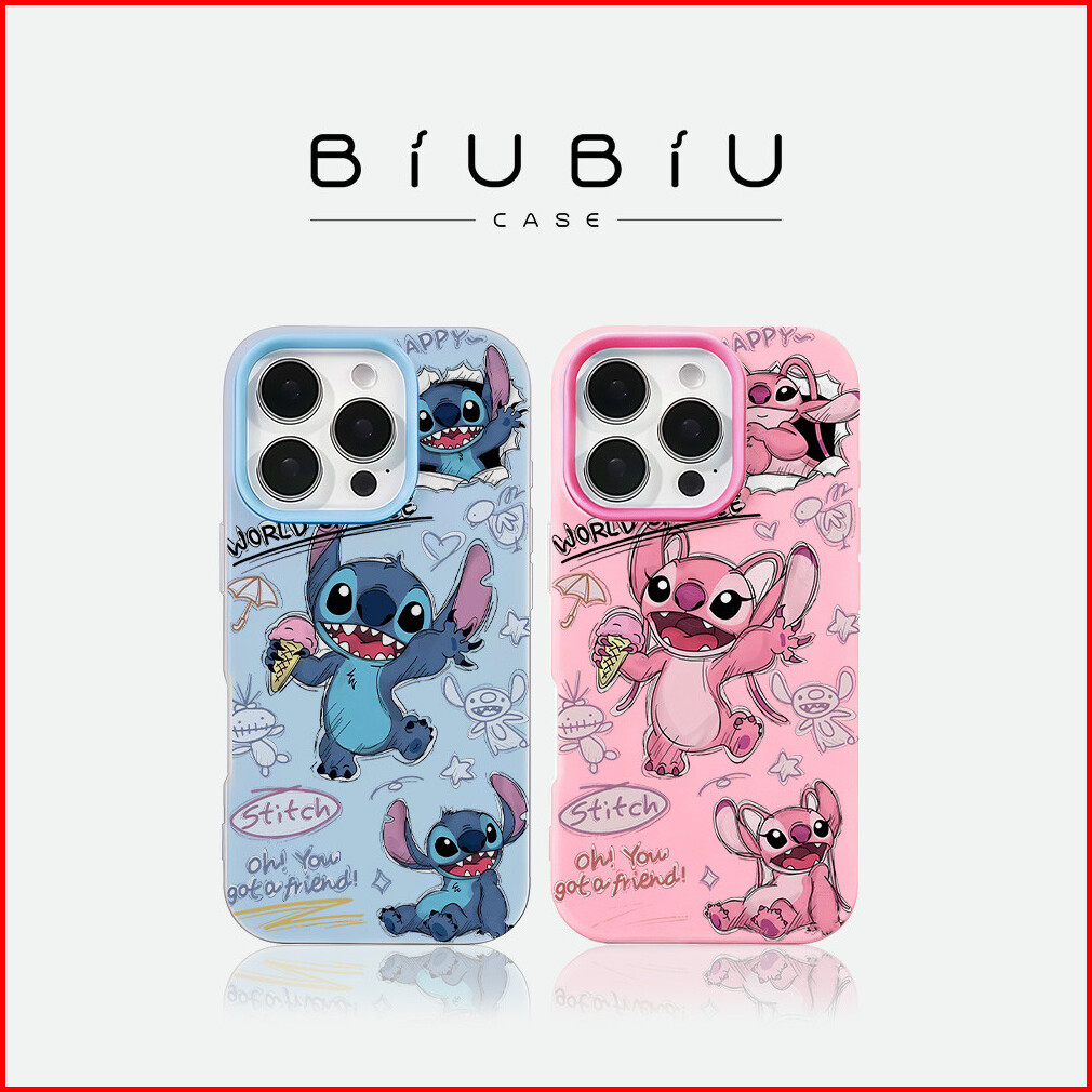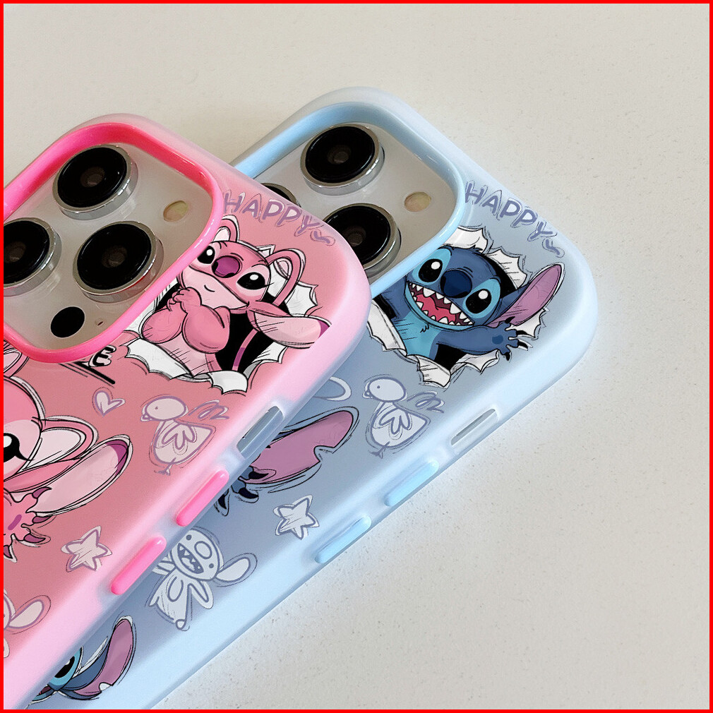 Biu Biu Case Jelly Color 2 In 1 Case - Compatible Pink And Blue Stitch For Iphone X Xs Xr 11 12 13 14 15 16 17 Plus Pro