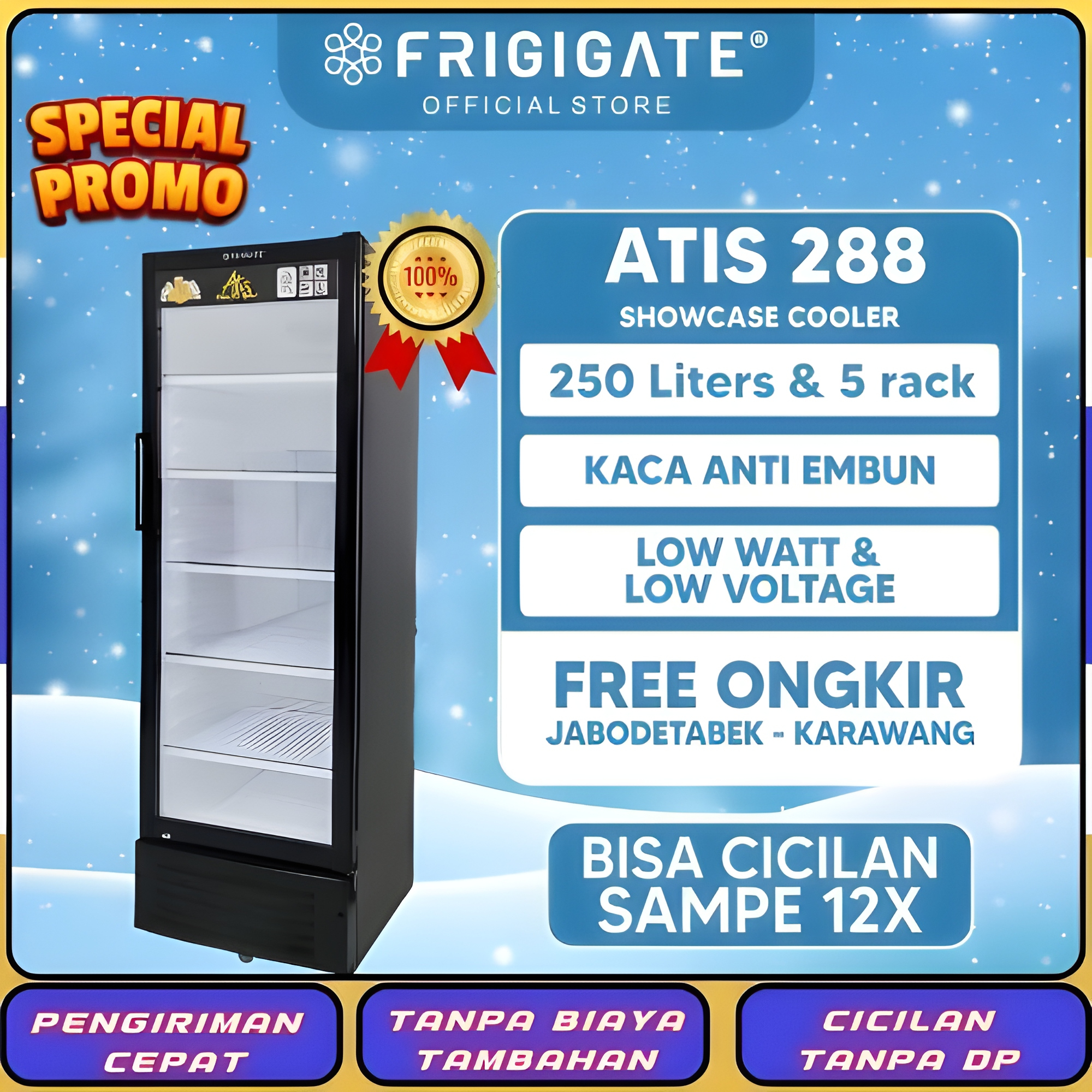 Sokes Pendingin Minuman FRIGIGATE Showcase SCA 200 / ATIS 238 4rak LOW Watt Lemari Minuman Dingin Best Seller