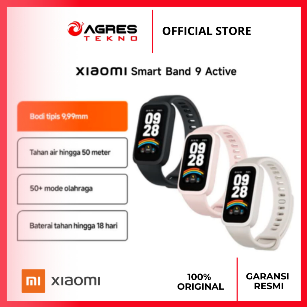 Xiaomi Smart Band 9 Active | Bodi 9,99mm | Tahan Air Hingga 50 Meter | 50+ Mode Olahraga | Baterai Hingga 18 Hari
