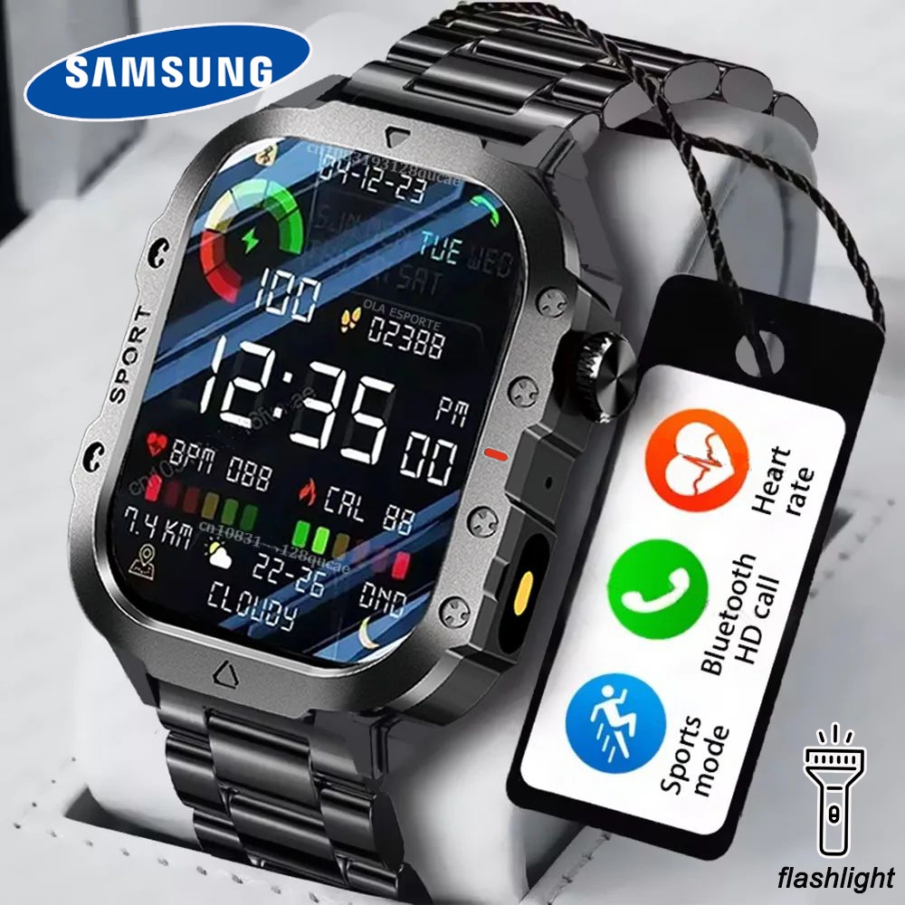 Samsung Smartwatch Jam Tangan Pintar Tahan Asli Pemantauan Kesehatan Pria Luar Ruangan 100+ Olahraga Deteksi Oksigen Darah Layar 1.96 Inci Panggilan Bluetooth Jam Tangan Pintar untuk Android dan IOS