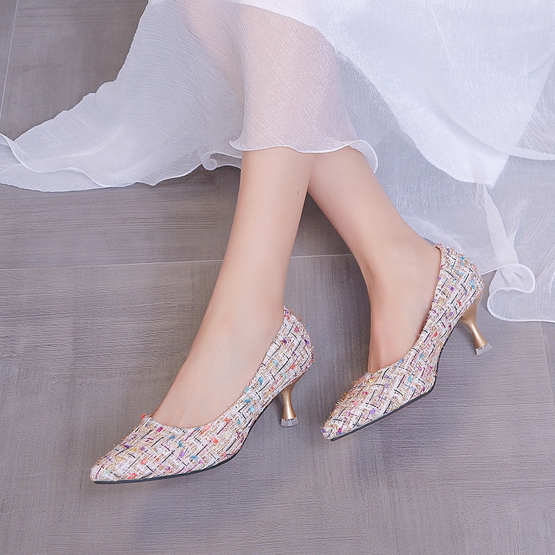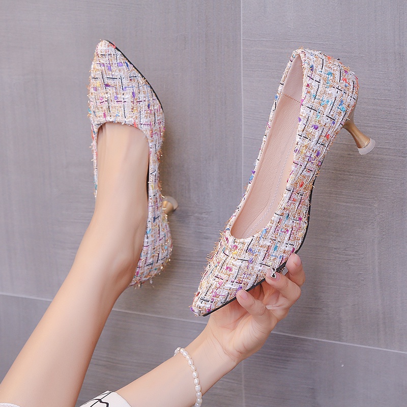 COLINE CLN-736 Heels Tweed / Sepatu Nylon Wanita #C1125