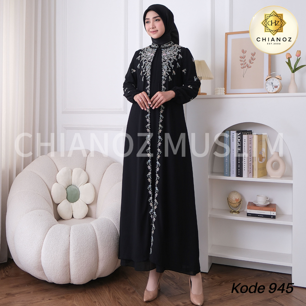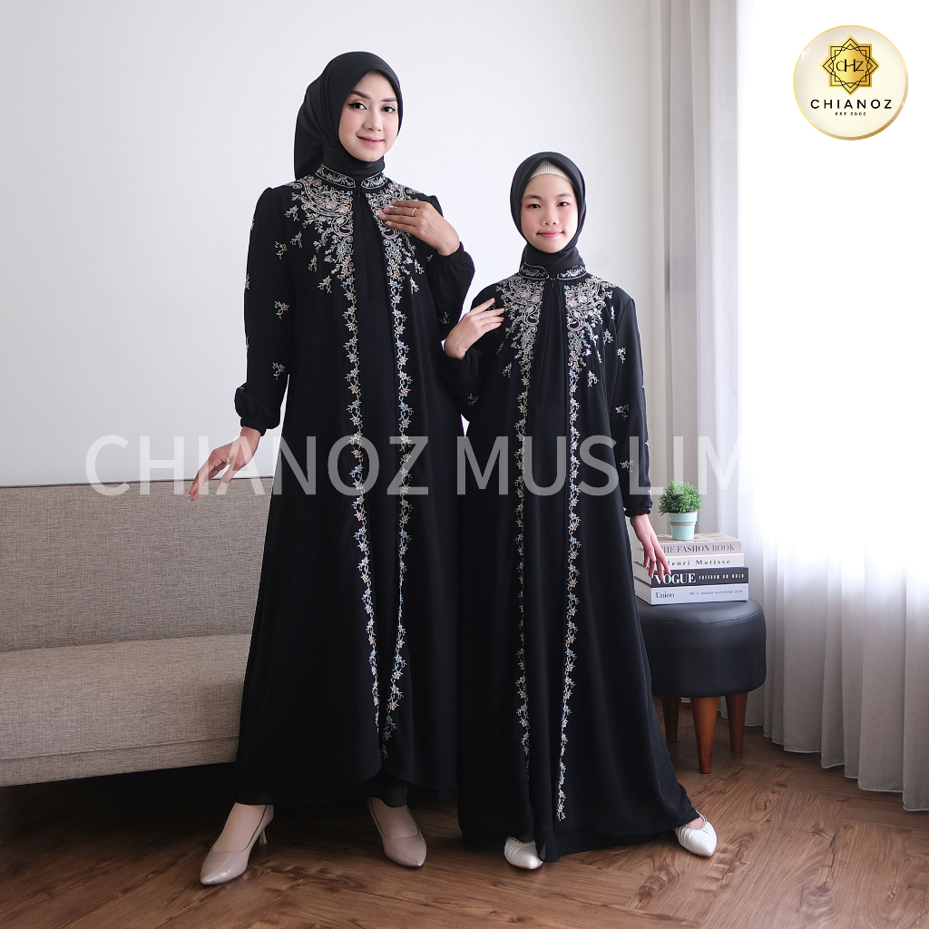CHIANOZ Gamis Hitam Mewah Rossa Dress Renda Bunga Bordir Baju Lebaran Umroh Haji Manasik Pesta Akad 945 938