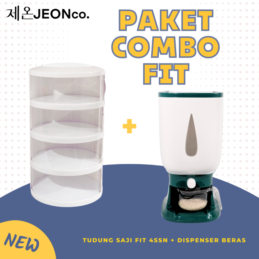 PAKET COMBO FIT Hampers Tudung Saji FIT 4 Susun + Dispenser Beras Tempat Penyimpanan Beras 10kg