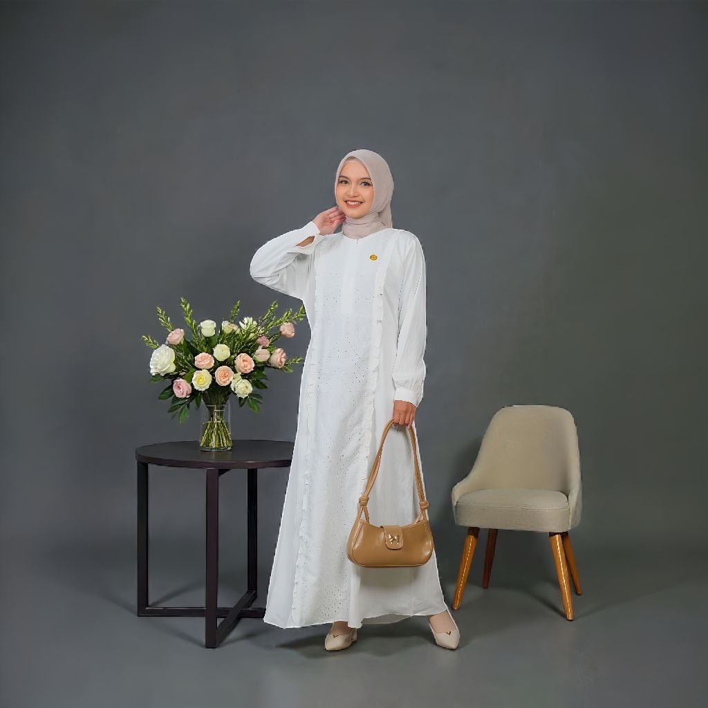 Ahzaveera Dress Gamis Katbol / Katun Bolong Kombinasi Polo Linen premium Grade A