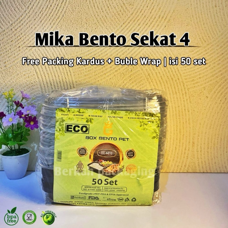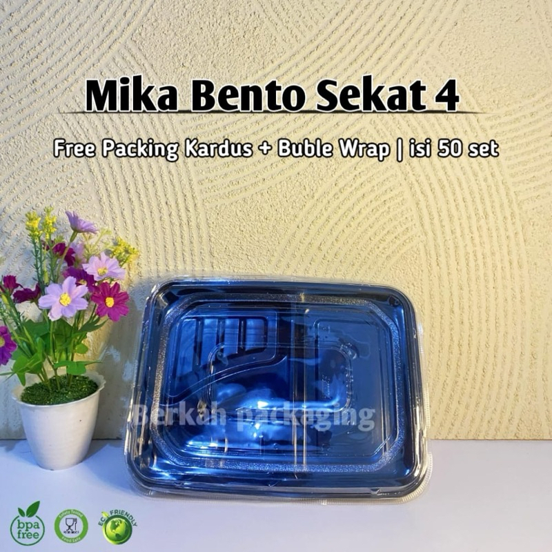 (50Set) Mika Bento Sekat 4 Bintang Premium + Tutup | Tempat makan Bento hitam NESTO