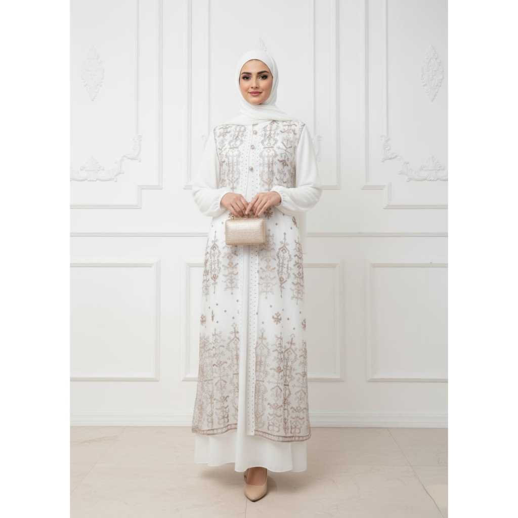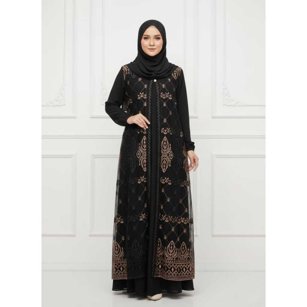Gamis Elegan Outer Brukat Busui frendly Dress Mewah Bahan Ceruty Babydol Terbaru Kekinian
