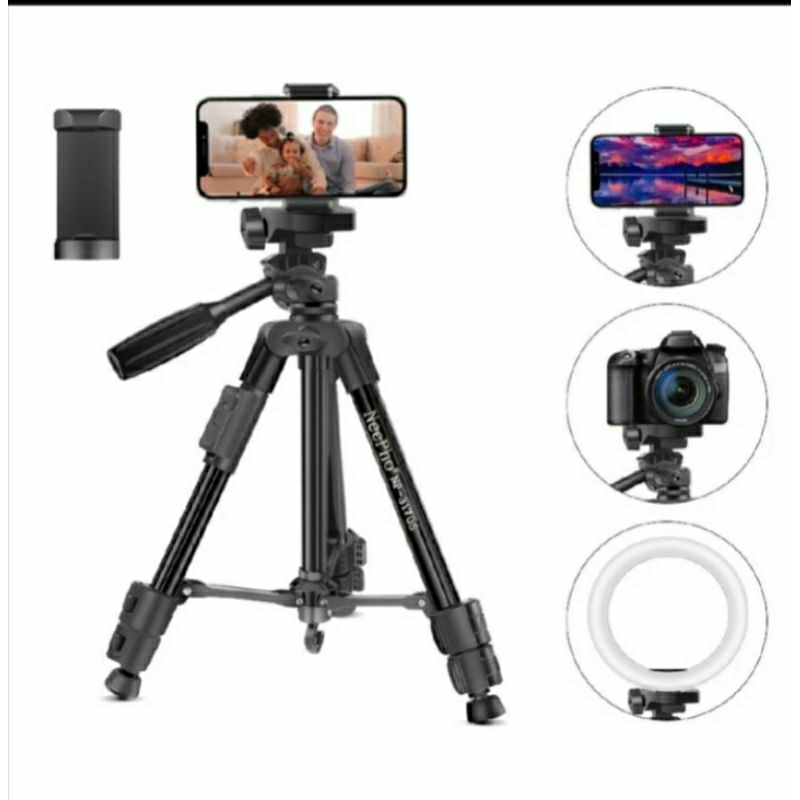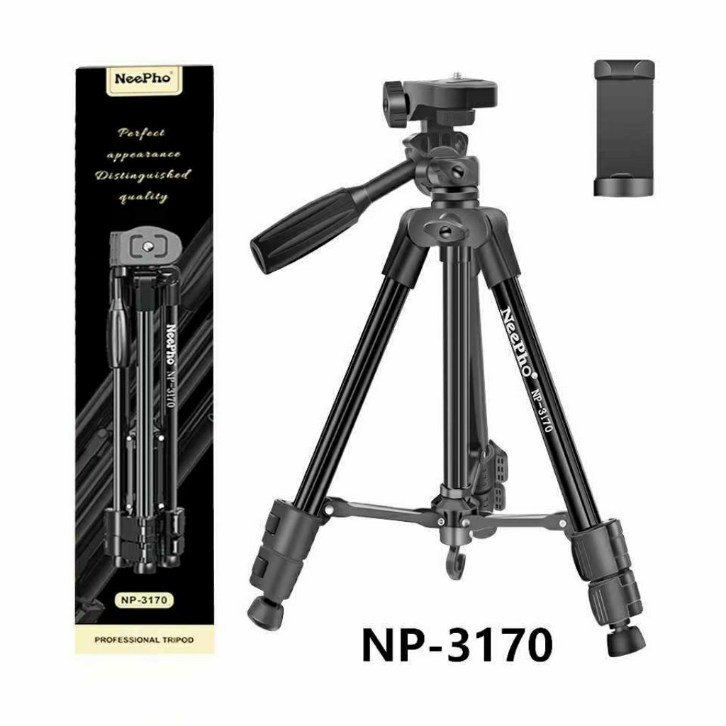 NEEPHO NP-3170 Tripod Hp | Camera | Ringlight Plus Holder U Kokoh Kuat Hitam NP3170