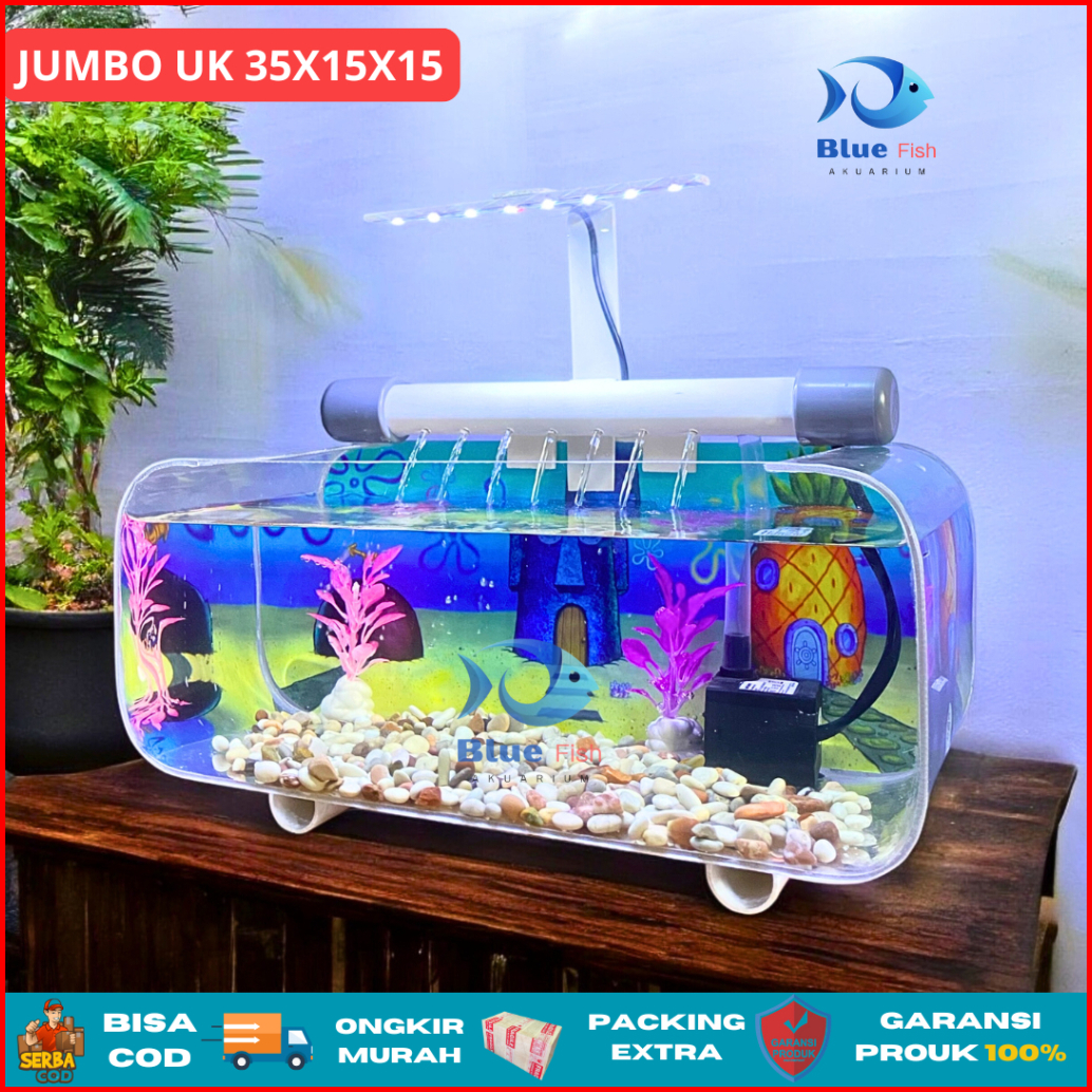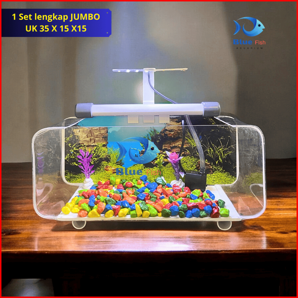 1 Set Aquarium Akrilik Akuarium Minimalis Jumbo Uk 35 X 15 X 15 Lengkap Tinggal Pakai Jumbo Ptb