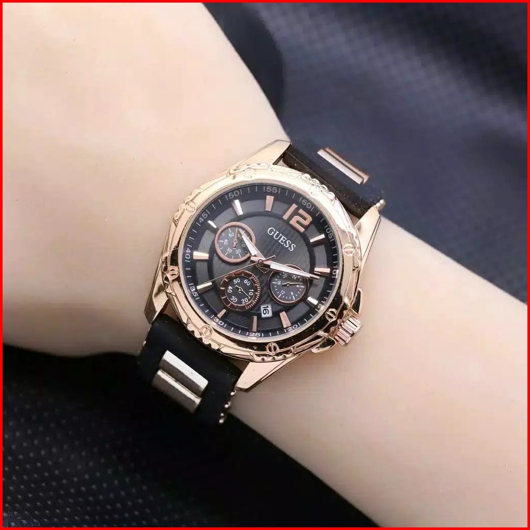 Jam Tangan Wanita Guess Rubber Chrono Hiasan Tanggal Aktif Bl3202